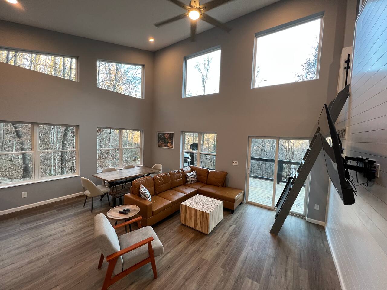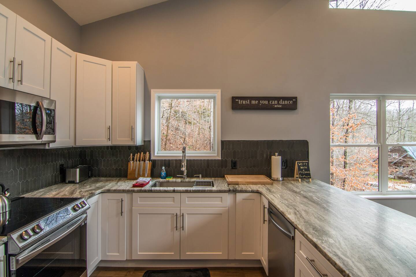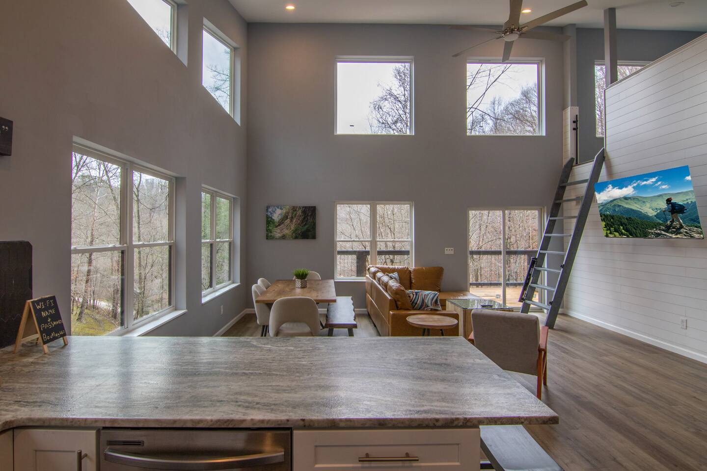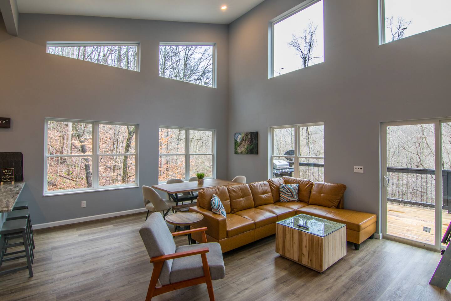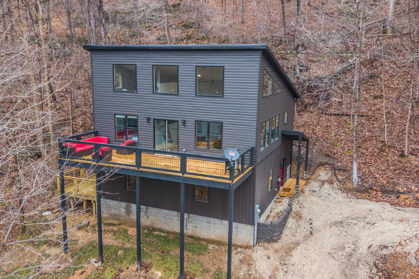 This cabin is not accessible if you have a rear wheel drive automobile. An AWD or 4WD vehicle is fine in good weather and mandatory in inclement weather. There is a doorbell camera and an exterior motion sensor floodlight camera pointed at the driveway for your safety if arriving after dark.